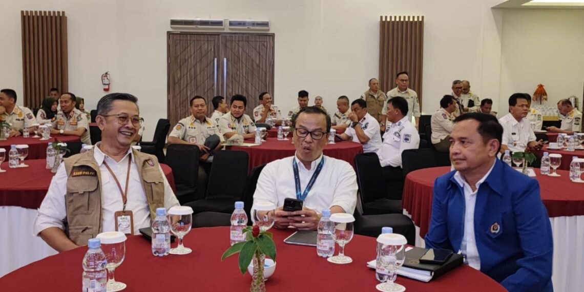 SWARAPUBLIK – Satuan Polisi Pamong Praja (Satpol PP) Provinsi Jawa Barat,melaksanakan kegiatan Rapat Koordinasi Monitoring dan Evaluasi Bidang Penegakan Hukum Dana Bagi Hasil Cukai Hasil Tembakau Tahun 2024 dirangkaikan dengan Forum Perangkat Daerah Forum Praja Wibawa 2024, di Kabupaten Bandung, Selasa (30/1/2024) dan Rabu (31/1/2024).Rakor di hari pertama Selasa (30/1/2024) itu,dibuka oleh Asisten Administrasi Umum Setda Provinsi Jawa Barat,Hening Widyatmoko dan dihadiri langsung Kasatpol PP Provinsi Jawa Barat,M Ade Afriandi dan para Kasatpol PP Kabupaten/Kota se Jawa Barat.